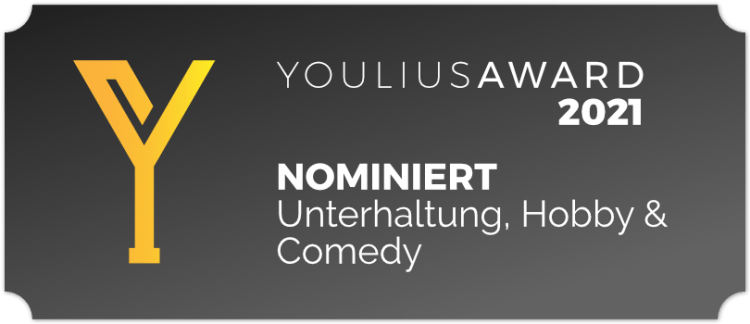 Mein YouTube Kanal „…aaabsolut realitätsnah!“ wurde 2021 in der Kategorie Unterhaltung für den Youlius Award nominiert.
